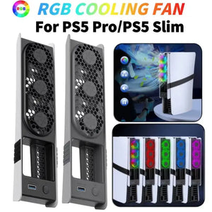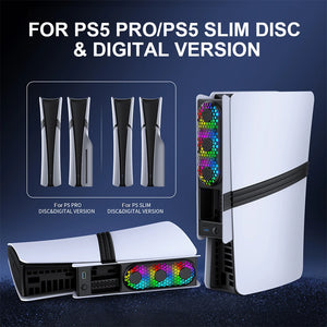 Compatible with PS5 Pro/PS5 Slim Cooling Fan Efficient Cooling System with USB Port & RGB Light Cooling Game Accessories Compatible with Playstation 5 Pro/Slim Disc & Digital Edition