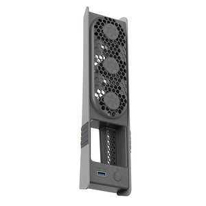 Feature: 1. Advanced Cooling Fan: This RGB cooling fan is Compatible with PS5 Pro/PS5 Slim, featuring three fans for efficient cooling. It ensures your console stays cool during intense gaming sessions, providing a seamless experience with minimal noise. 2. Efficient Cooling System: Equipped with a highly efficient cooling system, this fan helps your console cool down quickly. The efficient cooling system ensures optimal performance, so you can enjoy uninterrupted gaming. 3. Versatile USB Cooler Fan: The USB cooler fan includes an external USB port, allowing you to charge controllers or connect additional USB devices. Its easy installation and usability make it a perfect accessory for any gamer. 4. External Fan Cooler with RGB Lighting: Enhance your gaming atmosphere with RGB lighting. This external fan cooler offers three adjustable airflow modes, allowing you to customize your cooling experience while adding a touch of style to your setup. 5. Quiet Cooler Fan Design: Enjoy a quiet gaming environment with this quiet cooler fan. Designed for easy use, it provides a hassle-free setup, ensuring that you can focus on your game without distractions from fan noise. Specification: Origin: Mainland China Applicable models: Compatible with PS5 pro/PS5 slim console optical drive version and digital version Material: ABS Product weight: Product size: 260.00x66.00x50.00mm/10.24x2.6x1.97inch