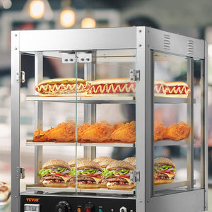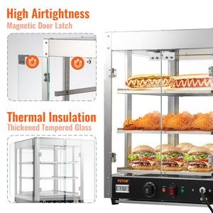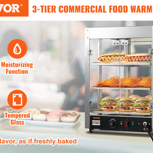 VEVOR 2/3 Tiers Countertop Food Warmer Commercial 3D Heating Pizza Pastry Warmer with Temp Knob Display Kitchen Appliance