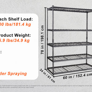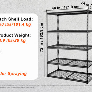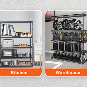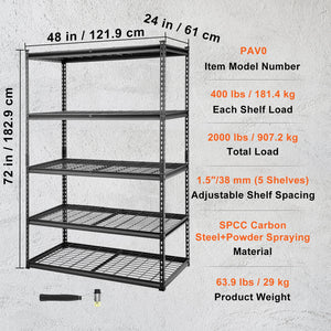 Load Up Your Life: Transform your cluttered garage into a neat and organized space with our storage shelving unit. With a 2000 lbs total load capacity, you're free to pile on tools, supplies, or whatever you need in your garage or warehouse. Remember, each shelf is a sturdy 400 lbs carrying companion!