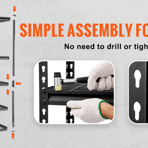Setup? A Piece of Cake: It is a breeze to set up this metal shelf, and non-professionals can also complete it in a few minutes. Leave your toolbox in the drawer. With our press-to-assemble design, your only assembly buddies are a rubber hammer and gloves – included, of course!