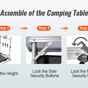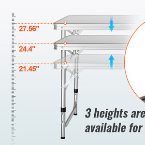- 3 Levels Adjustable Heights: The camp kitchen features an adjustable height of 21.45", 24.4", and 27.56". Three-height settings suit no matter for adults or children. It is designed with a reinforced X-shaped structure, which provides better stability and security during operation.