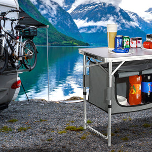 - Ready for Any Adventure: Whether you're RV traveling, camping, picnicking, hosting a backyard BBQ, or just enjoying a night under the stars, our camping table is the ideal solution for all your outdoor needs. It provides a sturdy surface for placing and storing items while enhancing your overall outdoor experience.