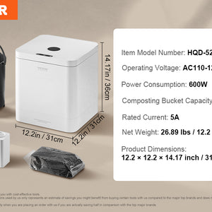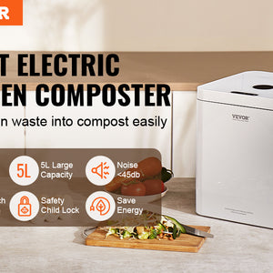 VEVOR Kitchen Composter 5 L Electric Composter for Kitchen Indoor Kitchen Food Recycler Turn Food Waste into Natural Fertilizer