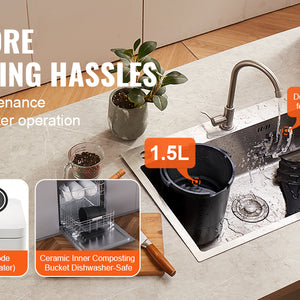 Self-Cleaning Function: Simply add 1.5L of water to activate the self-cleaning function, keeping the food waste composter clean and running efficiently. The detachable blade allows for easy cleaning, and the ceramic composting bin is dishwasher-safe, reducing maintenance efforts.