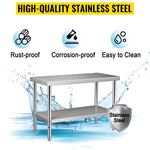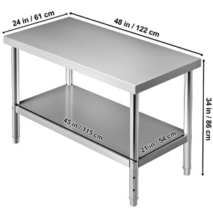 Robust & Tough Material: All parts of our kitchen work table are made of stainless steel material, enhancing its rust and corrosion resistance in all kinds of environments. With the wire-drawing surface, this table offers a beautiful appearance, is not easy to scratch, and hardly leaves water stains. Thanks to the high-quality material, this table is convenient for you to clean with a cloth and durable for long-term use.