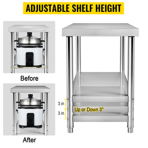 VEVOR Multisize Stainless Steel Kitchen Storage Organizer Work table Food Truck with Adjustable cabinet Storage Shelf for home