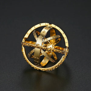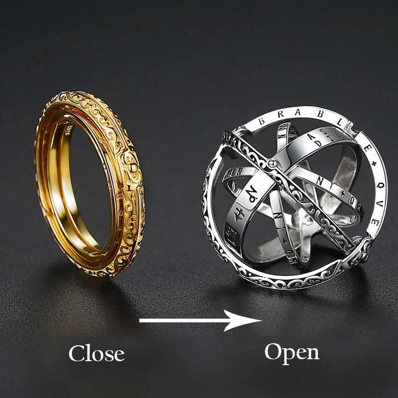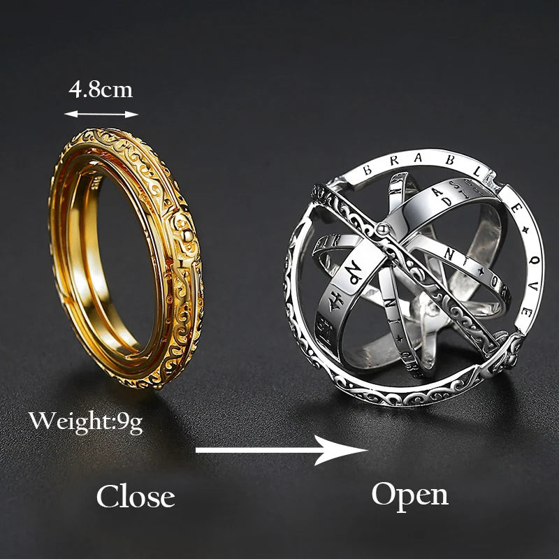 Vintage Astronomical Sphere Ball Ring Foldable Open Rotating Cosmic Letter Finger Rings for Couple Lover Jewelry Gift