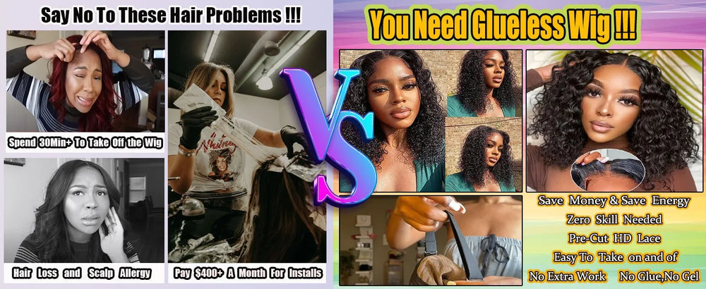 Glueless Wig: Very Quick to Put on or Take off Which is More Easy and Friendly for the Beginners, No Need to Cut the Lace, No Glue & Gel, Healthy for Your Skin