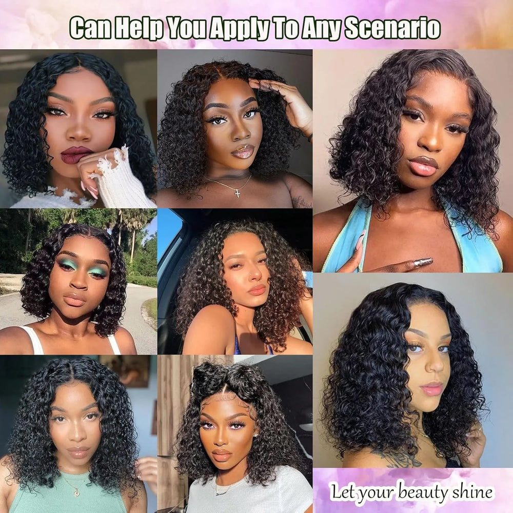Water Wave 4x4 Closure Wigs Human Hair Glueless Bob Wig Human Hair Pre Plucked 13x4 Deep Curly Lace Front Wig 180% Density Full