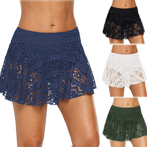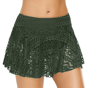 Women Lace Crochet Skirt Shorts Bikini Bottom Swimsuit Short Skort Swim Skirts Swimwear Swimming Trunks High Waist Beach Skirt