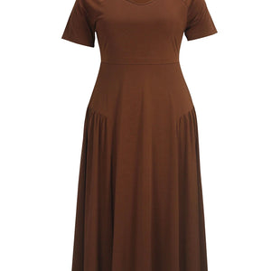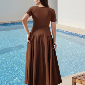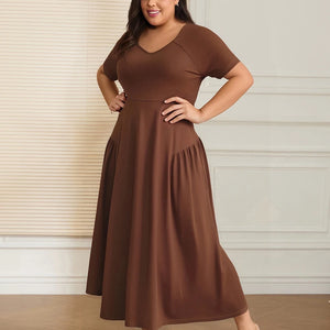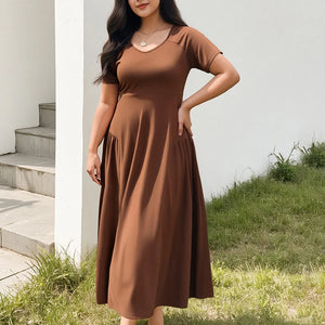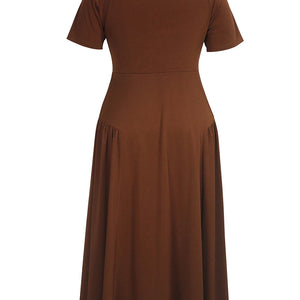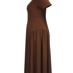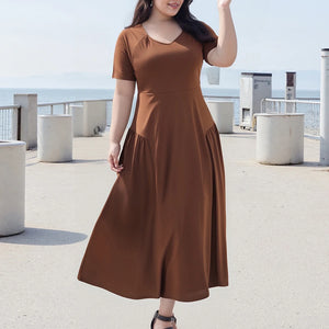 Women's Plus Size Long Dress Solid Color Short Sleeve Sweetheart Neck High Waist DressSize (cm)