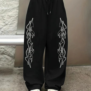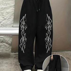 Women's Casual Flame Print Jogging Pants, Autumn/Winter Sports Pants, Drawstring Straight Leg Fashionable Loose Sports Pants