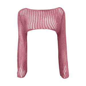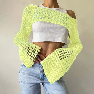 "Seductive Round Neck Solid Color Hollow Out Knit Sweater Long Sleeve Cover Up Top For Women"