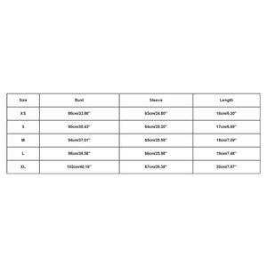 Size:XS | Bust:86cm/33.86'' | Sleeve:63cm/24.80'' | Length:16cm/6.30'' |