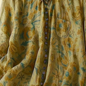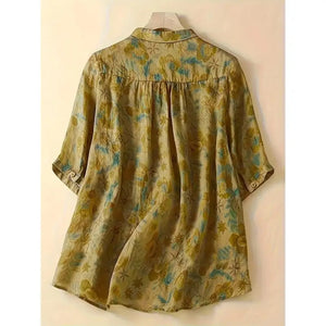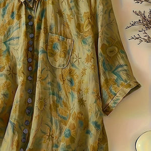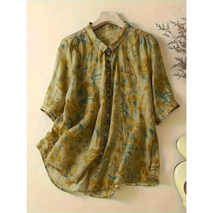 Women's Plus Size Fashionable Printed Pocket Mid Sleeve Lapel Button Casual Commuting Shirt