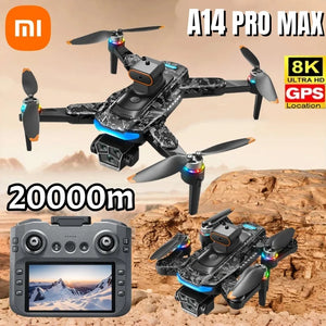 Xiaomi A14Pro Max Drone 8K HD Three Camera GPS Brushless Optical Flow Obstacle Avoidance 4.5-inch large screen UAV RC 20000M