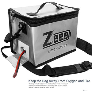 Zeee fireproof storage bag use for safely transporting, storing, and charging lipo batteries.