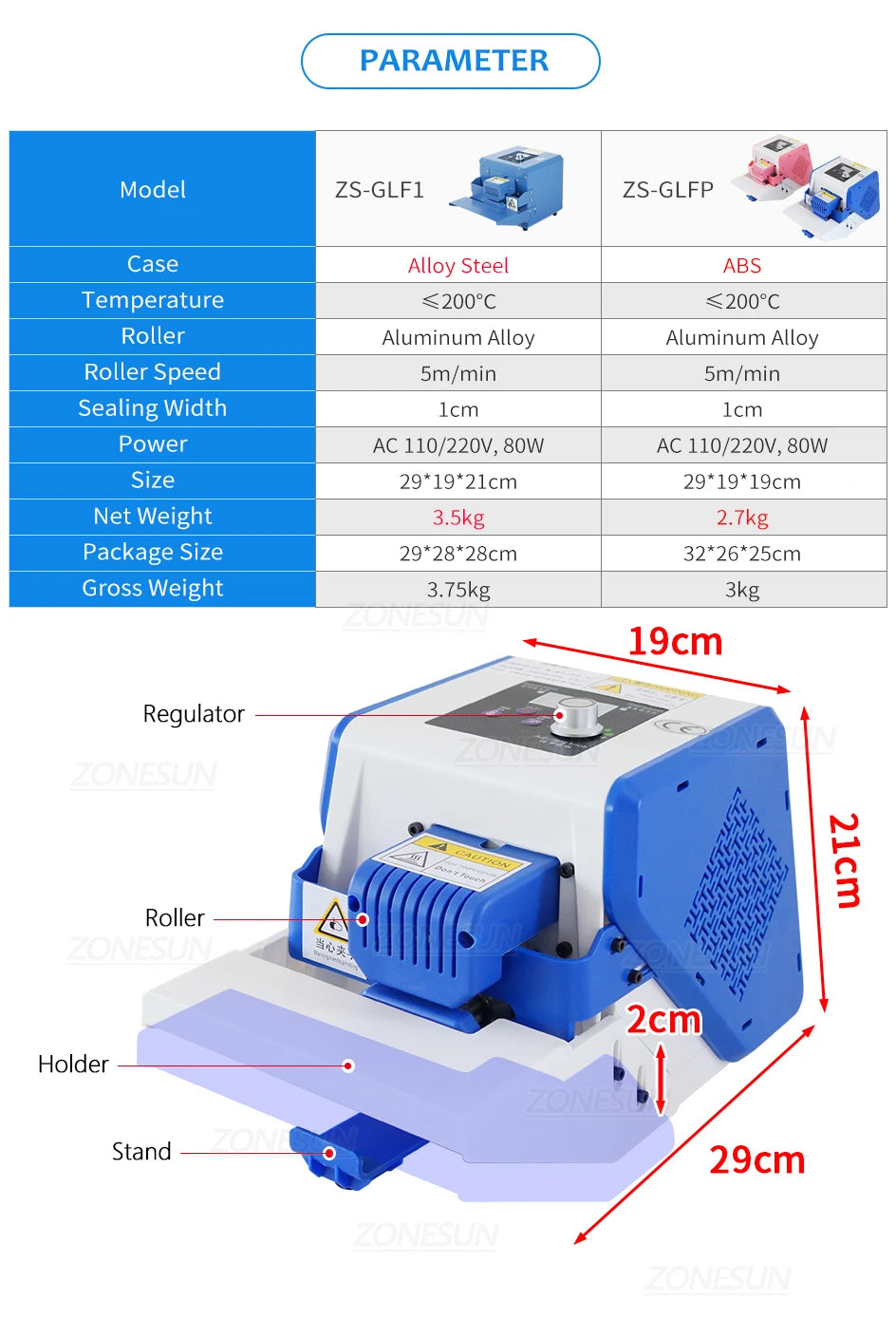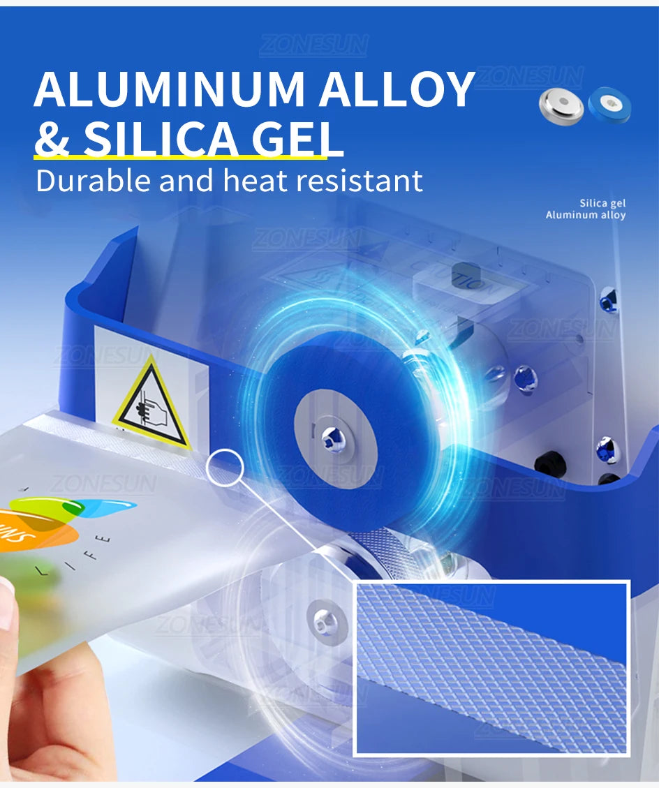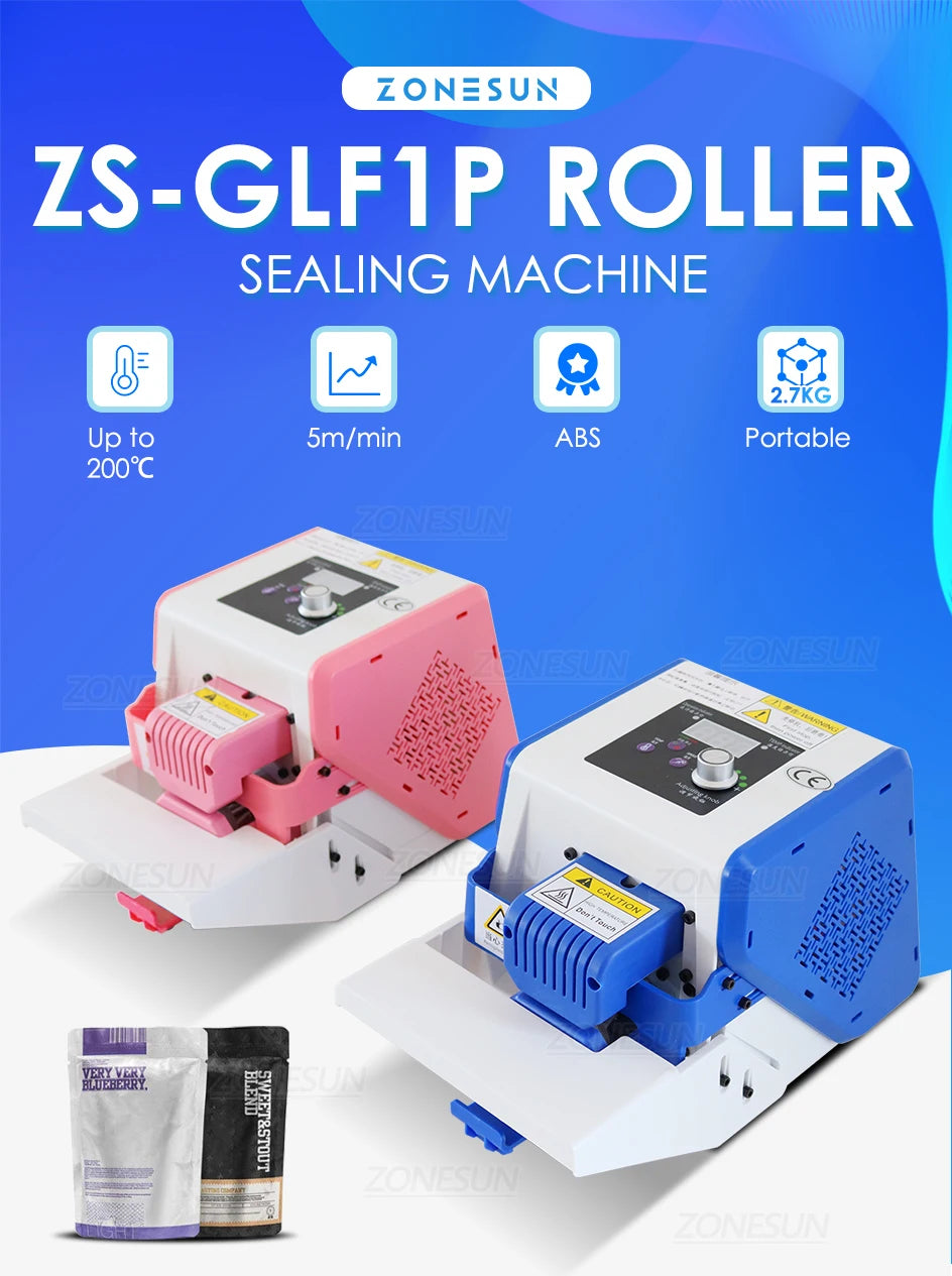 ZONESUN ZS-GLF1P Portable Bag Sealer Roller Sealing Machine Aluminum Foil Composite Plastic Film PE Coated Paper Food Packaging