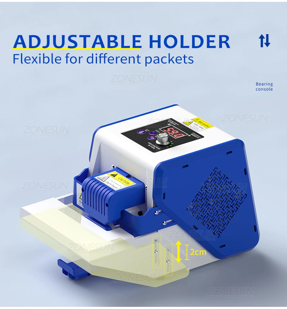 This sealer is used to seal bags or packets, including aluminum foil bags, plastic bags, PE-coated paper bags, tea bags, etc. It is widely used in the packing industry.